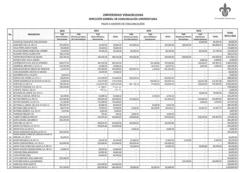 Y, bueno, si en la lista son 64 medios, y Javier Duarte aseguraba que en Veracruz hay 500 portales y mil periódicos y revistas y ocho mil reporteros, entonces, la relación comercial de la UV con la prensa de Veracruz resulta ultra contra súper reducida.